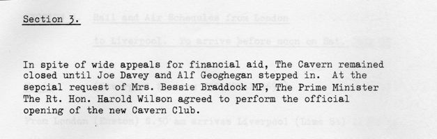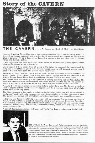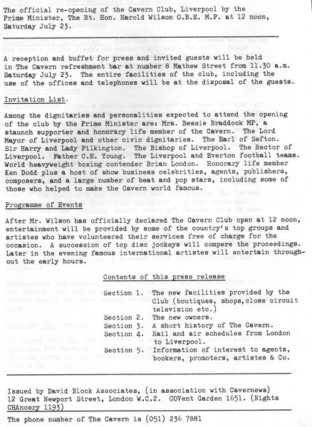allowed us to scan the press release, invitation and programme of events for the Cavern reopening.