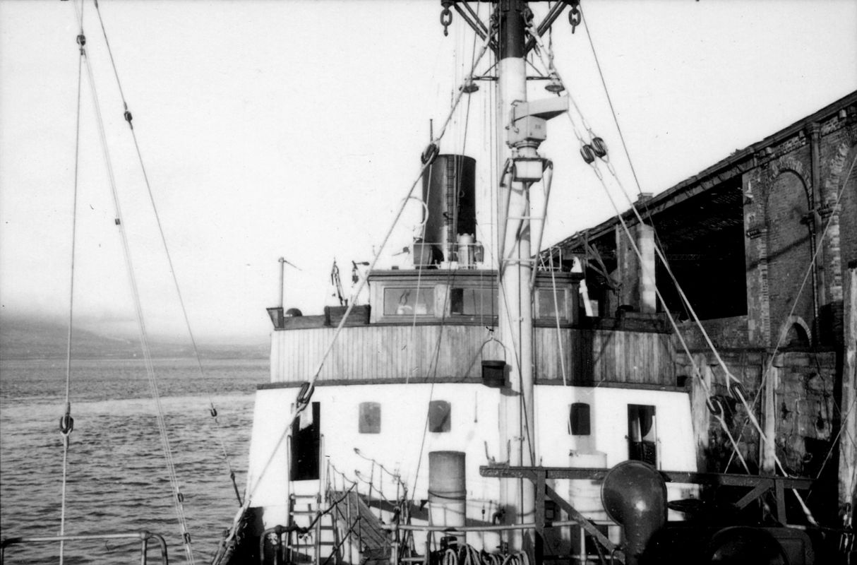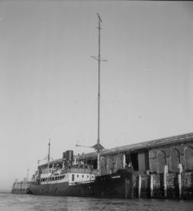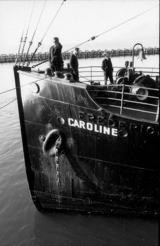 With the exception of the large photo of the Fredericia at sea (which has no information on the back) the photographs on this page are the work of Bruce Fleming and Barratts Photo-Press Ltd of Fleet Street. Mark Keable of Ipswich24 Magazine has kindly infomed us that Barrett’s Photo Press was a long-established photo press agency, probably going back to before the war and it was merged into what is now the Press Association.