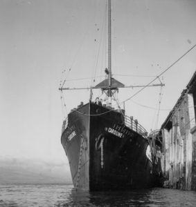 Bruce Fleming has very kindly allowed us to reproduce his pictures, although he believes that the copyright probably rested with the late Ronan O'Rahilly, who commissioned them. Bruce recalls travelling to Greenore with publicist Les Perrins and David Block for the secret photographic assignment, but was somewhat sceptical of Ronan's plan and had no idea that the ship he was to photograph would become a legend in radio history. Bruce has photographed many other legends over the years, but mostly people rather than ships.