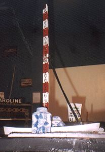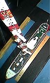 JOHN'S BASIC NOTES The Ross Revenge was built from a basic Revell plastic kit-"The Arctic Corsair." Parts such as masthead lights were bought in from maritime model makers. Surprisingly, no model makers, do anything like mast construction kits, so I used three Hornby trackside kits and extracted components from them. There are three diaramas-seagulls landing on the mast/feeding on fish, two guys painting the mast, and an un-named female crew member sunbathing nude on the aft deck something I saw whilst actually on the Ross! |
