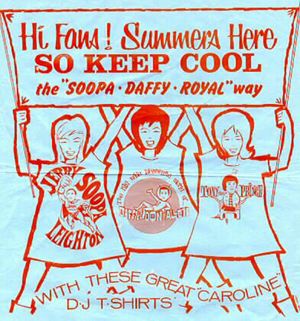 I came across this photo of me, sandwiched between Peter and Gordon and hanging on to 'Lady Godiva'! It was taken at Wimbledon Palais circa Sept/Oct 1966, when the song was moving up the Caroline Countdown of Sound. 'Lady Godiva' rode around the Wimbledon Palais dance floor on a white horse... Now that was a sight to behold! I thought the photo might add an "interesting dimension" to the Big L website. I also read your review of the book by Mike Read regarding the south coast music scene in the Sixties. There was a reference to the Wednesday night 'Caroline Nite' at the Shoreline Club in Bognor Regis. Here's a photo of a handbill that I saved from a visit there some time in '67 when I emceed an appearance by The Turtles. I don't remember an awful lot about the club although it was packed to the rafters so it must have been a popular venue. Many thanks to Steve for rescanning the Shoreline poster in 2012 to reproduce the nice, clear copy on the right. Note that the 1967 poster promotes a regular 'Errol Bruce Show'. Errol, of course, broadcast from both the North and South ships, and Swinging Radio England. (Click on the poster to enlarge.) The question is, does anyone own up to having been the lady who took the role of Lady Godiva? We reckon if that Peter and Gordon promo happened now, 'Lady Godiva' would probably be completely naked - and so would the horse! – Mary |