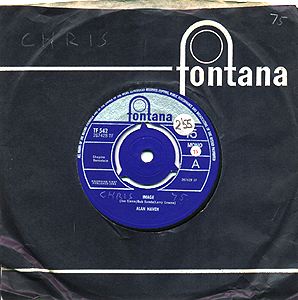 Webmaster's notes: 1: Image by Alan Haven c/w Romance on the North Sea, was first issued in 1965 in Fontana TF 542 (above). The reissue, in 1967 was Fontana TF835. And I wholeheartedly agree with Bob about Hoots Mon, which happens to be one of the first ever singles I bought, in 1958. Cliff's Move It! is good too, but if I had to choose, I would go for Dynamite.
