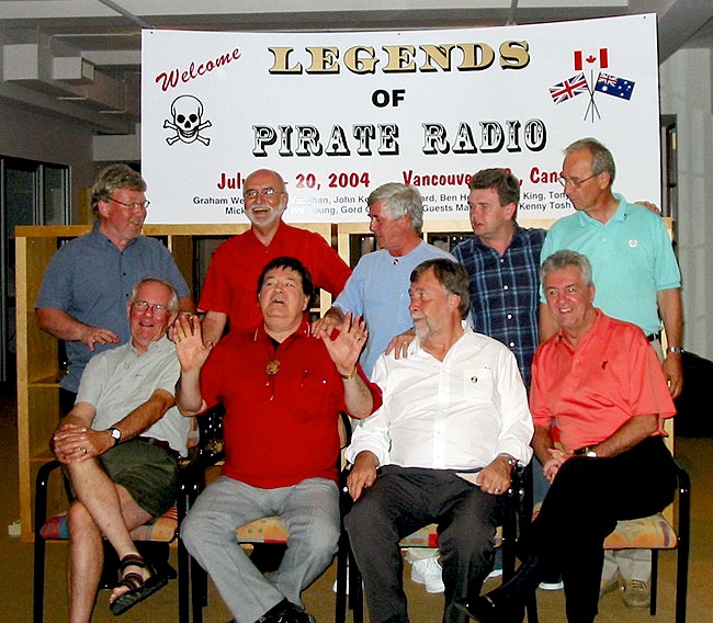 Mick enjoyed our reunion so much that when he heard that Graham Webb would be visiting Vancouver in the summer of 2004, he decided to organise the first-ever North American convention. This reunion marked the 40th anniversary of the original Caroline ship Fredericia, sailing north to Ramsey Bay in the Isle of Man where she became the broadcasting base of Caroline North. The reunion was attended by Gordie Cruse, Ben Healy, Mel Howard, John Kerr, Lorne King, Tony Prince, Bryan Vaughan, Graham Webb and Steve Young. Other guests were Mary Payne, Kenny Tosh, Trish Young and Mick's friend Adam.