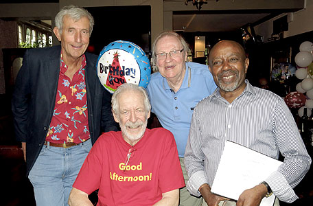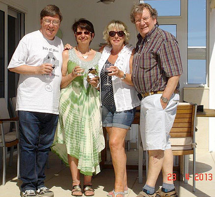 | Lunch with the Admiral Chris, Mary and Moosie were recent lunch guests of Robbie and Stella Dale at their lovely home in Lanzarote. They are enjoying their retirement and told us, "We both enjoyed a bit of anoraking through those old radio days." Photo: Robbie Dale |