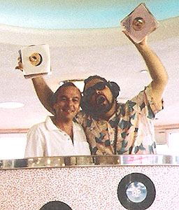 Eddie O'Konnor met the Wolfman in October 1992, at Mel's Diner in Universal Studios in Florida and very kindly supplied a photo of the occasion (left). Eddie says: "What an absolute professional he was and a really fabulous bloke – much missed. Wolfman sent me a signed copy of a great book published in US upon my return to UK – 'Border Radio' by Gene Fowler and Bill Crawford.