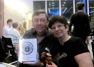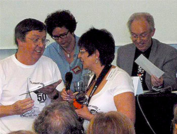 | Phil and Gill Martin We will be thinking of you on March 29th and raising a glass of unfermented grape juice at home to all our Offshore Radio friends and especially to you and Chris for the huge achievement that is your website. You richly deserved the award and Gill and I were truly thrilled with your win. As you know I hoped and believed you would be honoured. Well done. Do keep in touch. And lots of love from us both. |