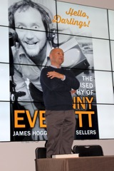 James and co-author Robert sign Jon and Simon's copies. Simon 'Betty' Booker was the ghost-author of Kenny's autobiography 'The Custard Stops at Hatfield'. He said Kenny never read it as he reckoned he 'already knew all about himself".