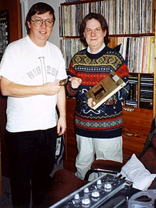 Chris writes: As regular viewers of the Radio London site will know, I provide a rescue service for people with ancient tapes that need transferring to a potentially more-permanent medium, namely MiniDisc and CD. It was a bit of a surprise to be contacted by Pat Edison, and to find that he was a prime mover in what was arguably one of the top three UK land-based pirate radio stations of the 70s Radio Kaleidoscope! Unlike Big L, Big K's Final Hour had not been available to enthusiasts before, primarily because the original 10" reel has been languishing in Pat's house since 1976! It was, therefore, with some honour and a lump in the throat that using the studio's trusty Revox B77 (in the foreground of the picture), I carefully remastered the tape to the Mac, did some digital surgery to get over a couple of dropouts, and their Final Hour was rescued for posterity. Over lunch, Pat reminisced with stories of piracy on the high hills of south-east England. I won't spoil it you'll have to look at the Radio Kaleidoscope website to read the full story. |