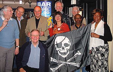 Saturday March 26th was when the clocks went forward and the years rolled back to Easter 1965. When Pirate BBC Essex played the offshore hits from 40 years ago, they sadly could not broadcast from the correct ship for the period, with both original Caroline vessels Mi Amigo and Fredericia long gone. But this slightly bizarre and historically-unique occasion saw Pirate BBC Essex broadcasting from a crowded studio aboard the Ross Revenge, while Radio Caroline broadcast its own programmes from the ship's other studio! Pirate Steve Scruton was at the helm, with contributions from renegades Tim Gillett, Ray Clark, Ian Wyatt and Twiggy Day. During the 4-hour programme, Caroline's current engineer, Alan Beech, took listeners on an audio tour of the transmitter and other original equipment which he had painstakingly reconstructed. LV18's Captain Tim visited the Ross and Tony (O'Neil) and Alan, aboard the Harwich Ferry, sent a text revealing how lonely the ship's glamour-girl Daphne, had been since Easter 2004. Text messages and e-mails came thick and fast from around the globe. Dave Cash, Keith Skues and Daph-knee, copyright Pirate BBC Essex, 2004. At the end of the programme, it was announced that Pirate BBC Essex will return to Harwich and the LV18 in 2007, broadcasting from August 4th to 14th, to commemorate the 40th Anniversary of the enforced closure of the majority of the offshore stations. Photos from the 2005 broadcast are on Martin van der Ven's site. For more about the 2004 Pirate BBC Essex broadcast from aboard the LV18, read our report and visit the Pirate BBC Essex's own website. |