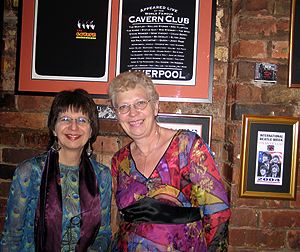 is John" Mary was lucky enough to win tickets from The Beat magazine for the show we have been promoting for some weeks, 'Come Together Right Now'. She and her friend and Knees Club Official, Jenny Royal, travelled to Liverpool on December 11th to see the show at the Empire Theatre, which took us both back to our teens. It was an exceptionally good show with great musicians recreating the music and times of John Lennon. Altogether, we had a wonderful evening, rounded off by a party at the Cavern Club. Full details of 'Come Together Right Now' with a link to the website, are below and Jenny and I cannot recommend it too highly. Watch out for the announcement of 2006 tour dates. We would like to thank the editor of The Beat, David Parker, and Ian Watts, who plays Paul McCartney, for enabling us to enjoy a wonderful night out. |