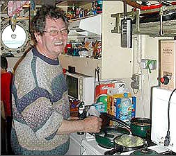 Birthday, Dave! The Cashman is also planning another big double-header with Emperor Rosko. (Full details above) In fact, it's already proved so popular that it's now going to be TWO events. Rosko's last big pirate double-header was in 2004, when he and Tony Prince hosted a Caroline North vs South battle of the DJs. (left) Dave impresses with his skills in the LV18 galley during Pirate BBC Essex 2004. Photo courtesy of Duncan Johnson. |