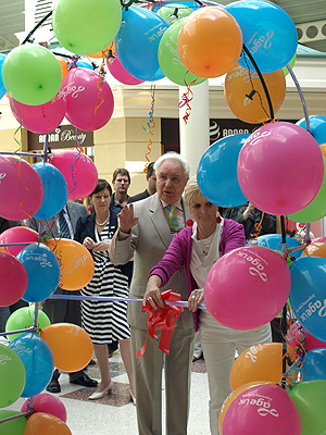 Kenneth Ross DL President of Age UK Buckinghamshire assists in setting up the tape |