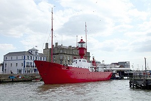 BBC Essex at Offical Opening Click here for audio courtesy of Steve Scruton and BBC Essex – Steve interviews Tony O'Neil; Colin Crawford, Chairman of the Pharos Trust, introduces Councillor Neil Stock, Leader of Tendring District Council, who performs the ribbon-cutting. John Sales' photo report of the ship at her new anchorage (taken on a proper summer's day!) is here. |