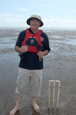 Watery Wickets Ray Clark has kindly sent some personal photos of the event, which he covered for BBC Essex, apparently with mic in one hand, glass in the other. Not much chance of either batting or catching for Mr Clark, then! (The Knees Club Founder is disappointed to note that the Clark patellae have been kept under wraps.) |