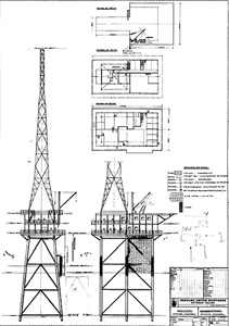 First English feature on REM Island (Right) Plans for the artifical platform. A larger version can be viewed in Han's feature. "Of course the owners of the REM project could have used a ship for television transmissions," Hans writes, "But knowing the immerse technical difficulties in transmitting TV from a ship; they decided that a sea-bed-based island in international waters would be the simple and perfect answer." The government closed down the popular stations in mid-December 1964. |