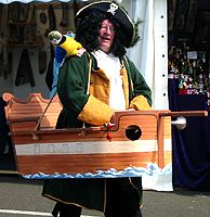 behind). With that sort of sea cred, all of 'em should know the ropes* about completing Ol' Chumbucket and Cap'n Slappy's TOTLAPP The Official Talk Like a Pirate Personality Inventory. We eagerly await the arrival of the carrier pigeons with the results. With a website devoted to radio stations run by seaweed-encrusted scallywags, the Radio London webmasters feel we should offer our strongest support for this amazing venture. We are launching their own branch of the piratical vernacular movement especially for Watery Wireless enthusiasts. Pirate Anoraks Revere Real Offshore Terminology (PARROT). This will assist participants in adding to their basic pairate vocabulary such well-loved phrases as, 'The station with the very loose anchor', 'Oops, sorry, the tender's just banged into the side', 'AAAAAGH! (As opposed to "AAAAARRR!") I've just spilt a cup of Camp Coffee in my lap' and 'Excuse me, I have to throw up.' September 19th will not only be ITLAPD but PARROT day (a deceased Norwegian Blue, naturally. We strongly encourage every offshore lubber to participate and welcome suggestions for additions to the PARROT dictionary. Whilst the Webmasters appreciate that British Offshore radio is not a hugely familiar subject to the average US citizen, we do feel that the award of Honorary Anorak should rightly be bestowed on Ol' Chumbucket and Cap'n Slappy in the ITLAPD HQ across the briny, for their services to piracy. All we have to do now is explain the meaning of 'Anorak' to them. |