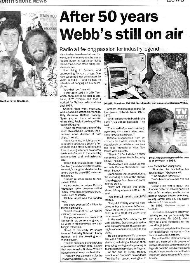 Webby in the News Graham Webb sent a scan of a two-part