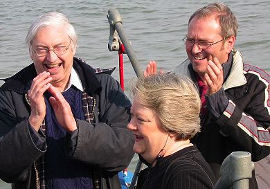 Ennis's Knees Ray Ennis will be appearing on my show Tone's Box of Delights on Goodmayes Hospital Radio on Tuesday 24 October. I will of course be discussing his involvement in the Knees Club during our chat. I hope you can tune in. Tone's Box of Delights goes out every Tuesday 2000 to 2200. His celebrity interviews are usually edited and repeated. Tony (right) and his wife enjoy a laugh with Duncan Johnson and Jon Myer at Roger Day's Margate lecture . Photo courtesy of Steve Szmidt. |
