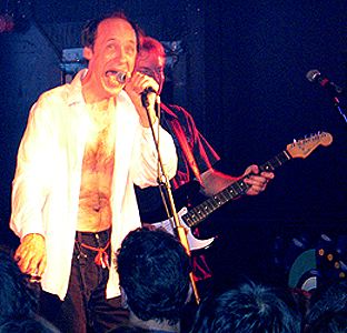playing the Cavern What began as a poignant occasion soon became a great evening. Tour cancellation jokes abounded with Otway opening the first set with his own take on 'Imagine' - "Imagine there's no World Tour..." Later, the audience cheerfully sang 'Leaving on a Jet Plane', accompanied by special guest Glenn Tilbrook - whom even Otway had to admit had enjoyed one or two more hits than him, during his 25 years as frontman of Squeeze. See our collection of photos and a very special 'movie' of the gig here. |
