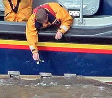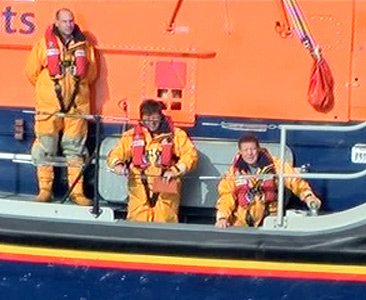 The Harwich lifeboat draws alongside the Ha'penny pier. After the ashes are scattered, white roses are strewn on the water |