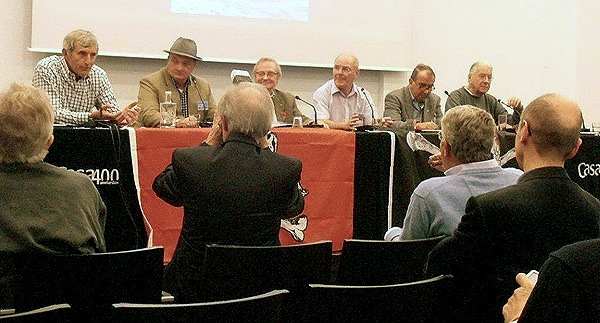 Ron Buninga and his friend Ton, very kindly sent this picture of the Radio London panel at the Amsterdam Radio Day, organised by Hans Knot, Martin van der Ven and Rob Olthof. (l to r) Dave Hawkins, Norm St John, Ian Damon, Moderator Ray Clark, Ron Buninga and Graham Gill. Ron says: "We enjoyed the Radio Day very much. The Radio London team with their former DJs was really great and what nice guys! The stories about their life and work on board the Galaxy were great. Ian Damon and especially Norman St.John mentioned my father in a very touching manner. It was nice to hear all the stories from the other panels as well, especially the Radio Veronica panel." Visit the Radio Day website for photos, video and audio. Captain Buninga's personal photos and memorabilia are here. |