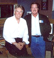 More Radio London Exclusives!You loved our exclusive photograph of a special offshore reunion in August's What's Happening and now Howie Castle, aka Bud Ballou, has very kindly forwarded this photo which was taken in the BBC Radio Two studios when he visited the Johnnie Walker Show in July 2001. Differences between radio in the UK and the USA are marked. Johnny was amused to hear from Howie, who works as a news anchor for KOGO in San Diego, California, that while 'travel news' here refers to traffic jams, in San Diego the travel news concerns airline information! Just as we were putting the site to bed, the following news arrived hotfoot from Howie at KOGO: