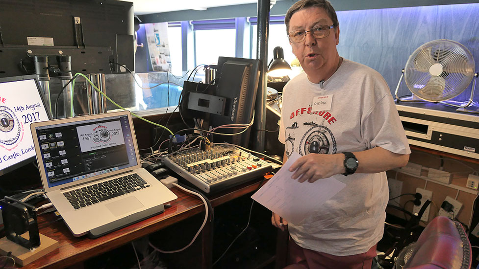Paul Rowley lining up his equipment for his marathon broadcast from the Bridge |