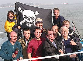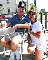 Pirate Parade "Everybody's talkin'!" (Right) Chris 'splice the audiotape' and Mary 'Knautical Knees' Payne