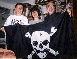 centre of the island. Maartin 'Barnacle Brains' Kayne Radio Essex, 355, Caroline and Radio Northsea International Hi there, mi hearties,And there I was thinking you had discovered TW's secret stash of rum and Heineken Larger, that had delicately been placed in 'Davey Jones's locker' in case the DJs mutinied because of a disagreement over contents of the station's playlist. With Big L's reputation, possibly supported by many Anoraks, surely to speak like a pirate (pop-pirate style) you need to acquire a mid-Atlantic or Australian accent. 'Shiver me timbers', Mary, you're gonna get twenty lashes while roped to the mizzen (main) mast... that is if the 50kW of RF doesn't completely grill you first. Still if you reveal where those golden oldies from the Radio London 'treasure chest' were concealed you may be let off with a good 'keel-hauling' and a week in irons in the ship's brig. As for me, I will be in the captain's cabin madly chatting to the ship's parrot while rapidly counting my 'pieces of eight' that I just earned for doing a three-hour show. I suppose riding the waves sitting astride a heavily-loaded canon brings a whole new meaning to the phrase... a blast from the past. Well I must go before the musket-toting boys from Big L catch up with me. After all, according to a certain BBC political journalist... he who sits on a 'powder keg' must surely expect someone to light the fuse. Ah, it's time to 'walk the plank'. (Cue diving board) SPLASH! I think I have been sitting in the sunshine on Folkestone beach too long. Maartin Kayne aka Andy Cadier. Hythe FM: "Your Town Your Radio". Website: www.hythefm.com RSL Supporting the Hythe (Kent) Venetian Fete.