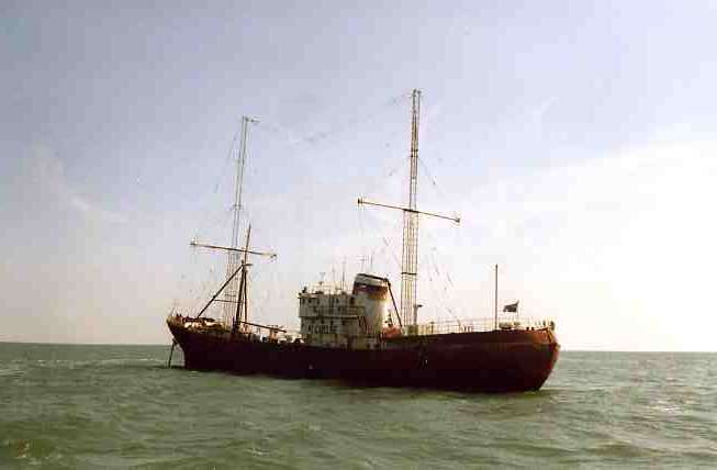 Tender visits by the Whitstable Navy to Radio Caroline's 'Ross Revenge' at The South Falls Head in the ships last few months at sea