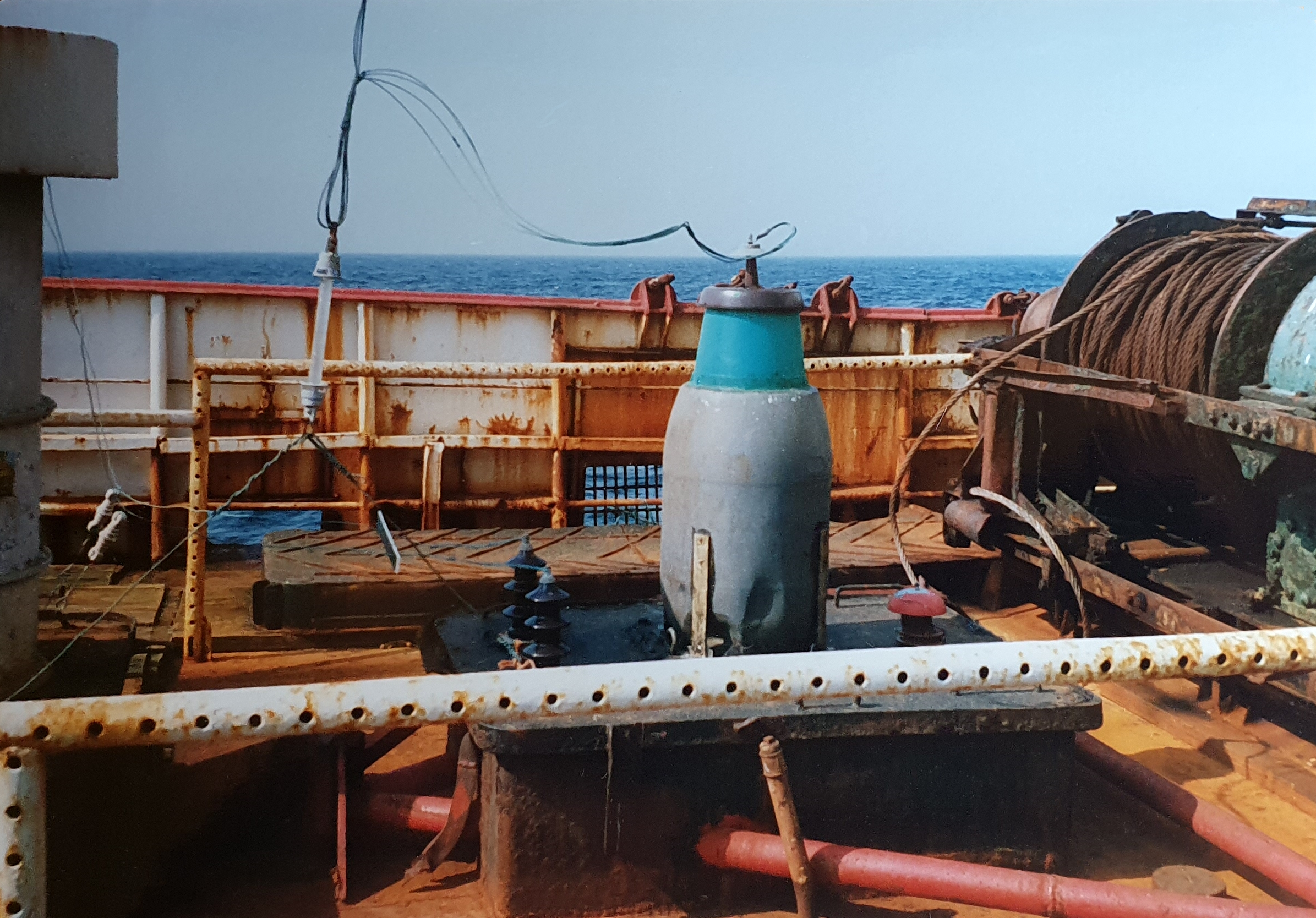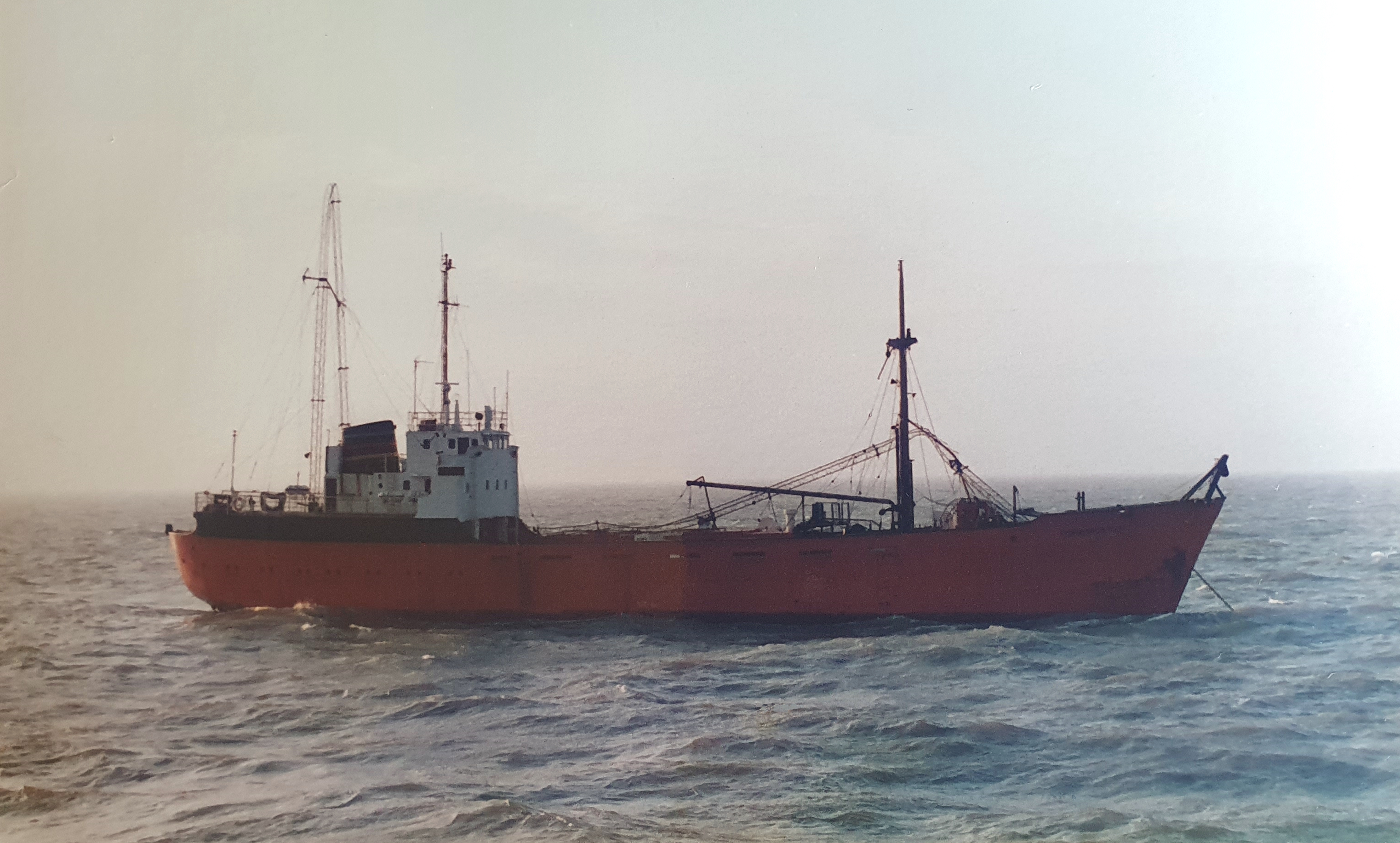 MV 'Communicator' with her broken radio antenna (January 1987)