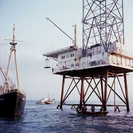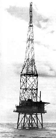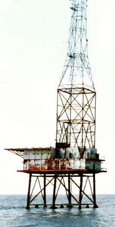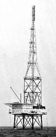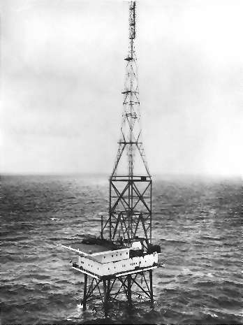 Perched 40' above the sea the platform with a substantial 360' antenna mast was erected alongside a helipad to enable supply by air as well as sea