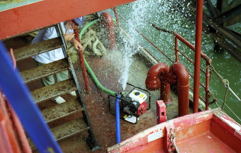 Sea water pump, bleeding the line of air before topping up the heads (toilet)