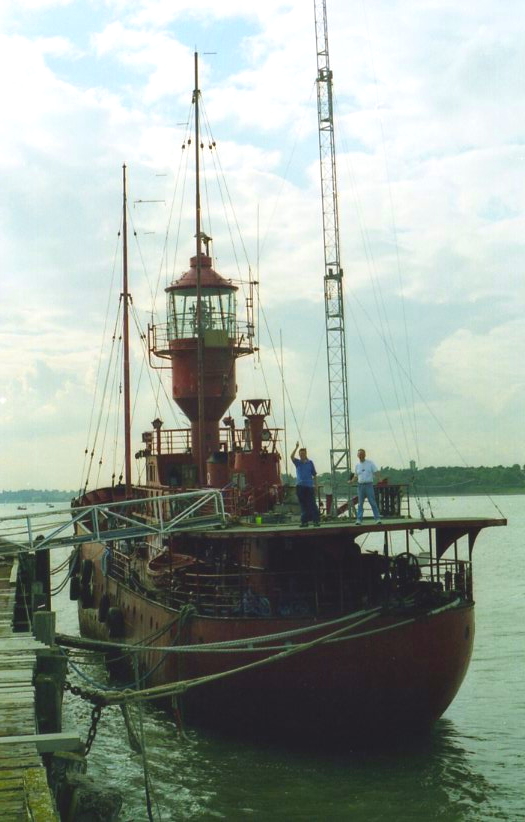The Radio Northsea International ship, a former Trinity House Light Vessel 18, affectionately named 'Mebo 3' moored at the old Railway Ferry Terminal at Harwich Harbour