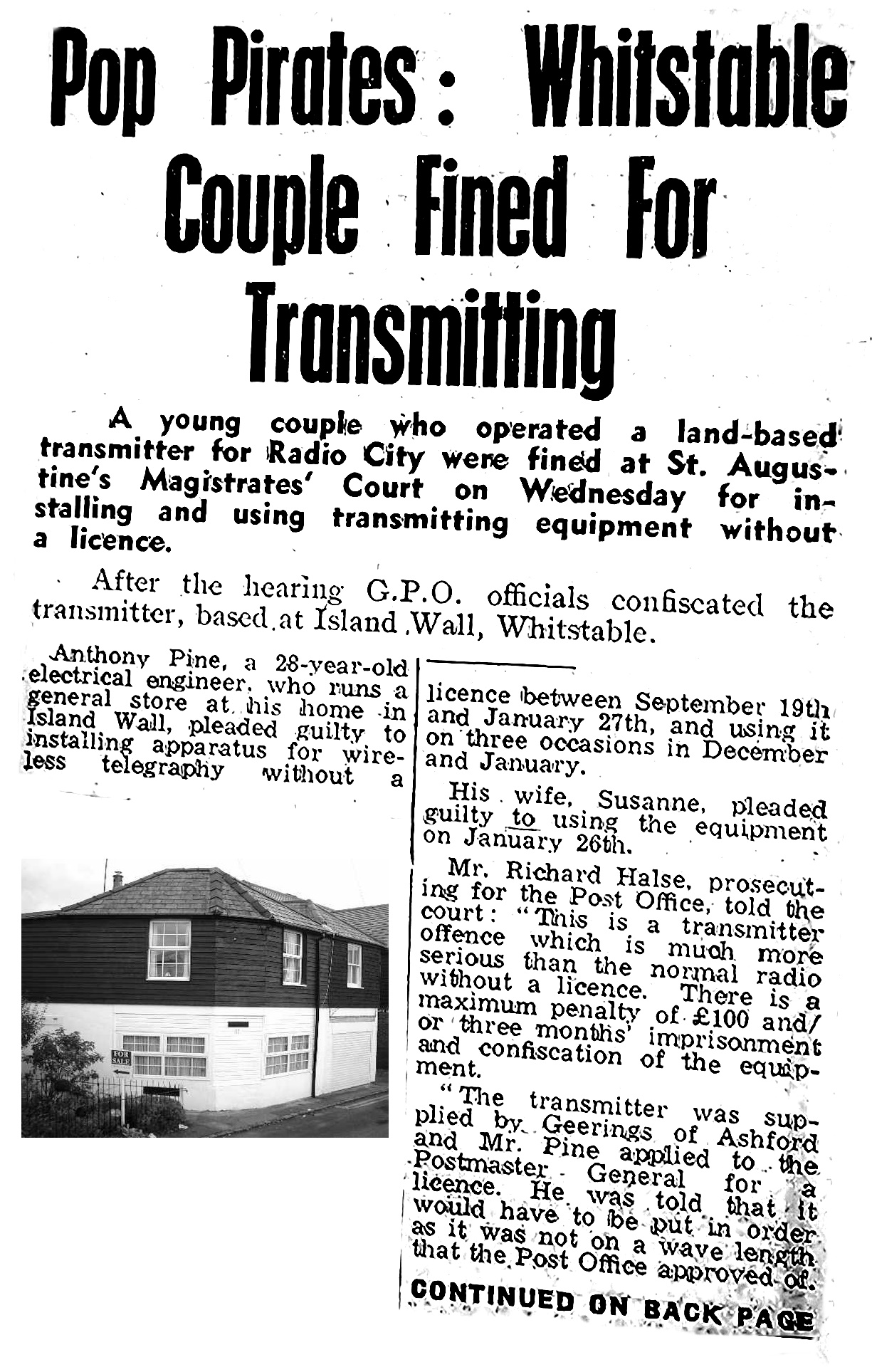 There hangs a tale; illicit broadcasts to the fort were made from a transmitter hidden in the shop, raided the GPO weren't able to locate either the transmitter or aerial which were hidden in a chimney breast