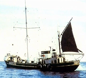 The Oceaan 7 was a 137ft converted Dutch fishing vessel built in 1939. Left unused for a decade, she had been purchased for £2,500. An £11,000 refit secured a Dutch certificate of seaworthiness but she did not have one for the UK. The 270 transmitter cost £7,000.