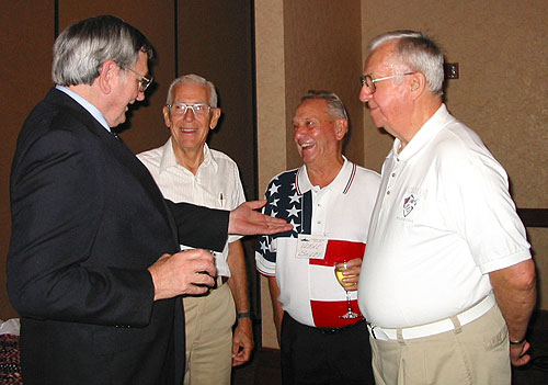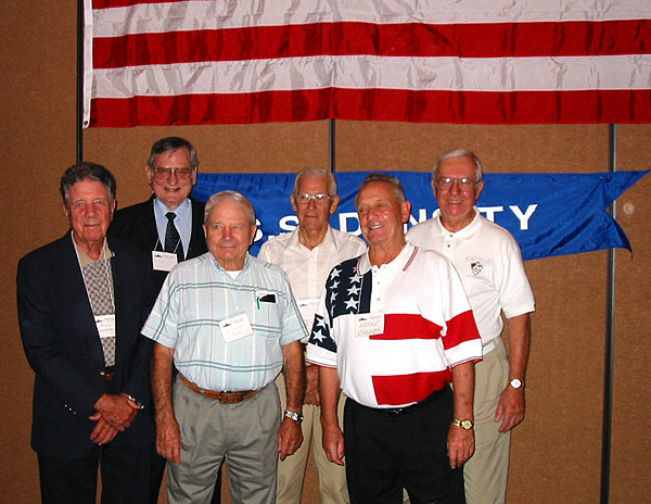 Ben and Tom Danaher were delighted to be able to attend the USS Density Reunion in Dallas in 2001 and meet the WWII shipmates Below, l to r: Bill, Ben, Charlie, Tom, Laverne and Russell. Sadly, all now deceased |