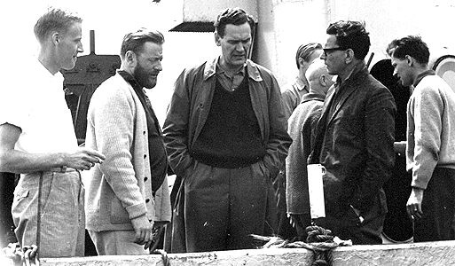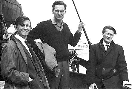 Radio London's Promotions Manager, Gordon Sheppard (far right) with Philip on the tender to the Galaxy.