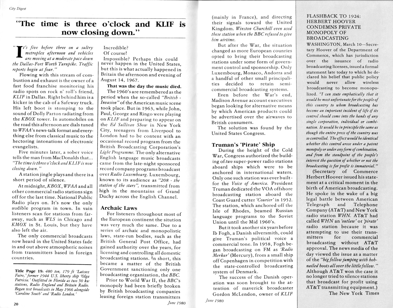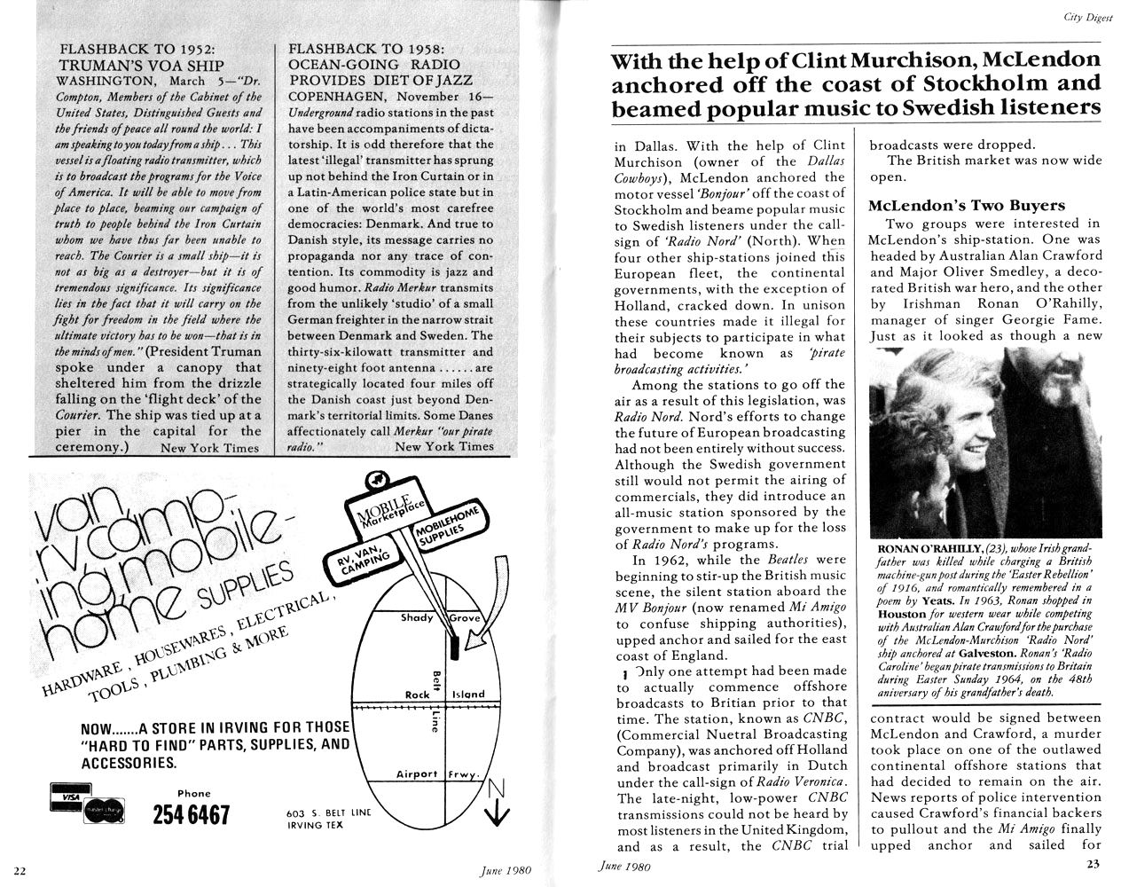 Grey Pierson, the Executive Editor of Irving City Digest, has kindly allowed us to reproduce this feature by Conrad Westinghouse, from the June 1980 edition of the magazine,