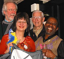 Happy Occasions: Big L's 40th Birthday, with Mary, Lil the parrot, Mitch and Tom Danaher. |