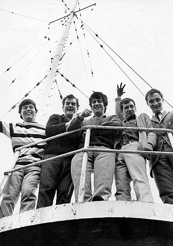 "During our visit, two of the great names from pop pirate history, Ed 'Stewpot' Stewart and Tony 'Bird Brain' Brandon, were also making a sentimental return to Big Lil, after 30 years. Amazingly, although Tony had filled out a bit and Ed had one or two grey hairs (haven't we all!), neither looked a lot different and scrambled aboard like 2-year-olds! Certainly the familiar wit and repartee soon started, with both reminiscing about the old days and the 'Summer of Lurrve'! I asked if they thought the same spirit could ever be recaptured on shore. Ed thought not. "There was something special about being on a pirate radio ship in the North Sea, in a roaring gale in winter," he said. "You obviously can't recreate that in a studio on land and that's what gave pirate radio its special magic and appeal to millions of listeners." | ![]() |