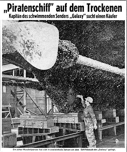 A German newspaper clipping, depicting work commencing on the Galaxy's barnacle-encrusted hull was kindly supplied by Captain Bill Buninga's son Ron