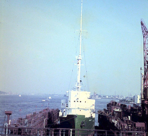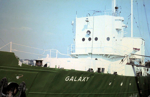 This collection of photos, kindly scanned by Ron and his friend Ton, includes some we have not previously seen and others which are better versions of ones we had received previously. They show the Galaxy during her 'green period', which was during the early years of her stay in Hamburg, when she still looked quite a smart vessel. |