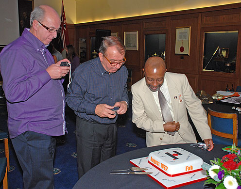 Ron & Ton admiring Mary's Birthday Cake |