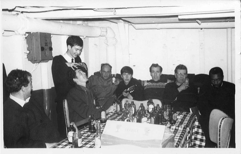 Some nights we would have a bit of a gamble. If the sea was rough, we got an empty beer bottle, laid it in the middle of the Ward Room table and bet which end the bottle would roll off, port or starboard. Not much money gambled, but it was fun. Another game was who could drink a whole small beer bottle the fastest, but we arranged that one DJ, who did not drink much, was going to win. Halfway through, he was getting excited because he was still in the competition, but of course everybody was drinking slow so that he could win and he did! He had a job to walk afterwards and we thought he was going up on deck to lean over the side. After about half an hour, we went to see if he was OK, but we could not find him. Then he was not in his cabin and we all had to search because we were afraid he went over the side. At last we found him in someone else's bunk one deck down, asleep.