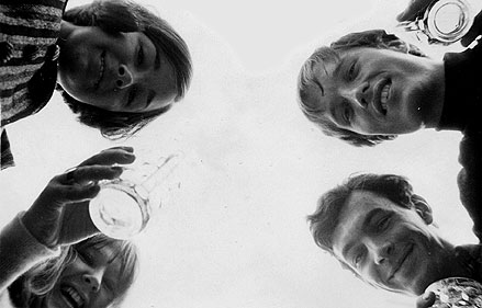 (Left) The friends pose for a typical Sixties-style photo, at The Chelsea Potter Russ had learned his trade on the Pirate Station Radio London, by far the best of the Pirates, and he had been responsible for switching off the station at the close-down on the 14th August 1967. Following the closure of Radio London by the Government, Russ went on to work as an engineer for London's new commercial station, Capital. It was here that he met Dave Symonds – who had just been appointed Programme Controller at Radio Victory the new ILR Station in Portsmouth. Dave invited Russ to join Victory as Head Engineer for its launch on October 14th 1975. Dave Symonds had assembled an impressive team, including Dave Christian, the top DJ at Radio Luxembourg, Sarah Ward, Roger Scott and Kenny Everett from Capital, Eugene Fraser from Radio 2 and Andy Ferris from Radio 1. |