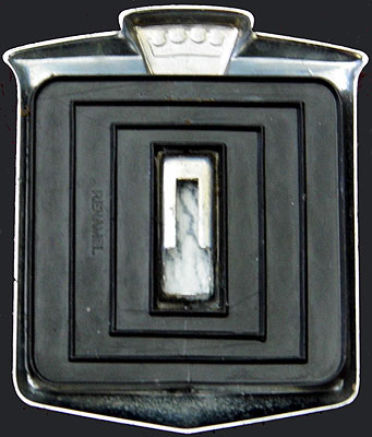 Extensive research has shown that the badge had been made by Renamel (AID) Ltd of London NW6, renowned badge manufacturers in the Sixties. It seems the company also manufactured the Caroline Club Car badge pictured on the Pirate Radio Hall of Fame, see link below. Both bear at the top, the Renamel company logo of a crowned letter 'R'. As far as can be established, the series of badges made by this company that come encased in a square-framed mounting with the crowned logo at the top, were known as 'Renamel M'. The same logo appears at different locations on other mountings and does not seem to be on all of the company's auto badges. Here, the crown appears without the 'R'.