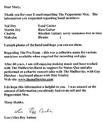 of himself with the band. Len tells us that the Peppermint Men were Ted Dry (lead), Martin