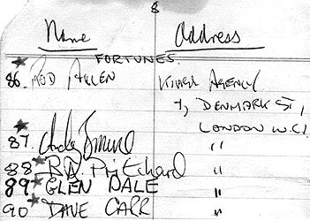On February 15th at Wycombe Town Hall, the Knees Club signed up the Fortunes: Rod Allen (member #86), Andy Brown (#87), Barry Pritchard, (#88) Glan Dale, (#89) and Dave Carr, (#90). This Golden Ring was not only on its way up The Fab Forty, but also the Nationals.