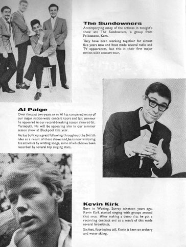 Keith Skues (at the time still working for Caroline South) appeared as the guest DJ on ATV's Thank Your Lucky Stars, alongside The Bachelors, Joe Brown and The Bruvvers, The Moody Blues, Marianne Faithfull and Them. Around the end of 1964 and beginning of 1965, there was a tradition of the show having a co-host appearing with either Brian Matthew or Pete Murray. A number of guest DJs came from 208 and other offshore jocks who appeared on TYLS around this time were Ed Moreno and Simon Dee. The co-host idea appears to have been dropped once Brian Matthew became the show's permanent host.![]()